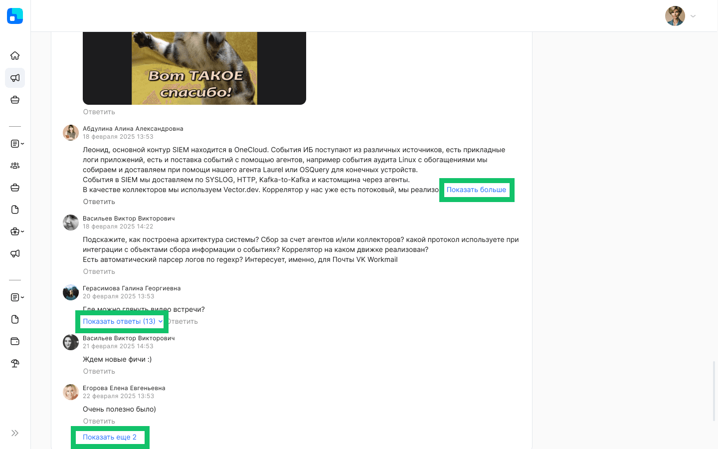 Если к комментарию были оставлены ответы пользователей, то для их просмотра нажмите кнопку Показать ответы.