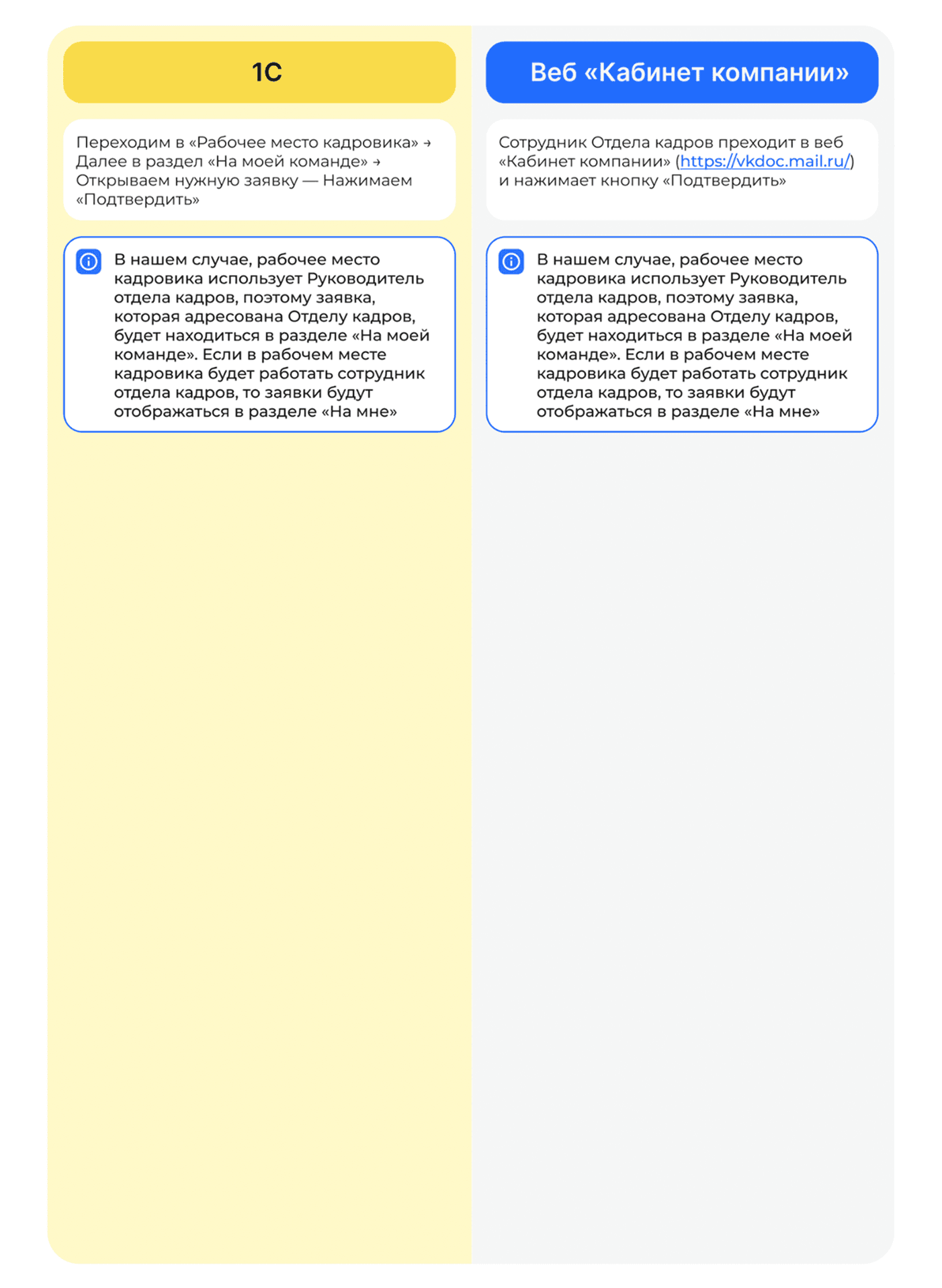 - Переходит в Сервисы сотрудника веб-сервиса VK HR Tek, в раздел Заявки.