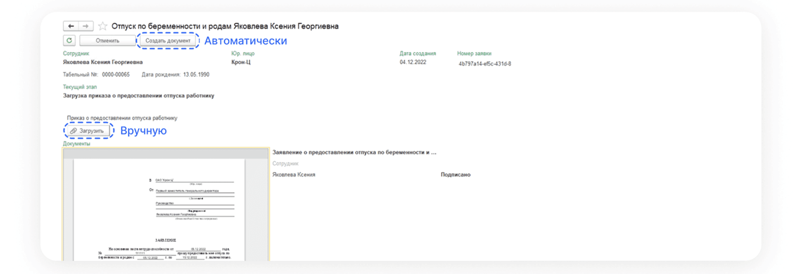 - Приказ можно сформировать автоматически или загрузить вручную.