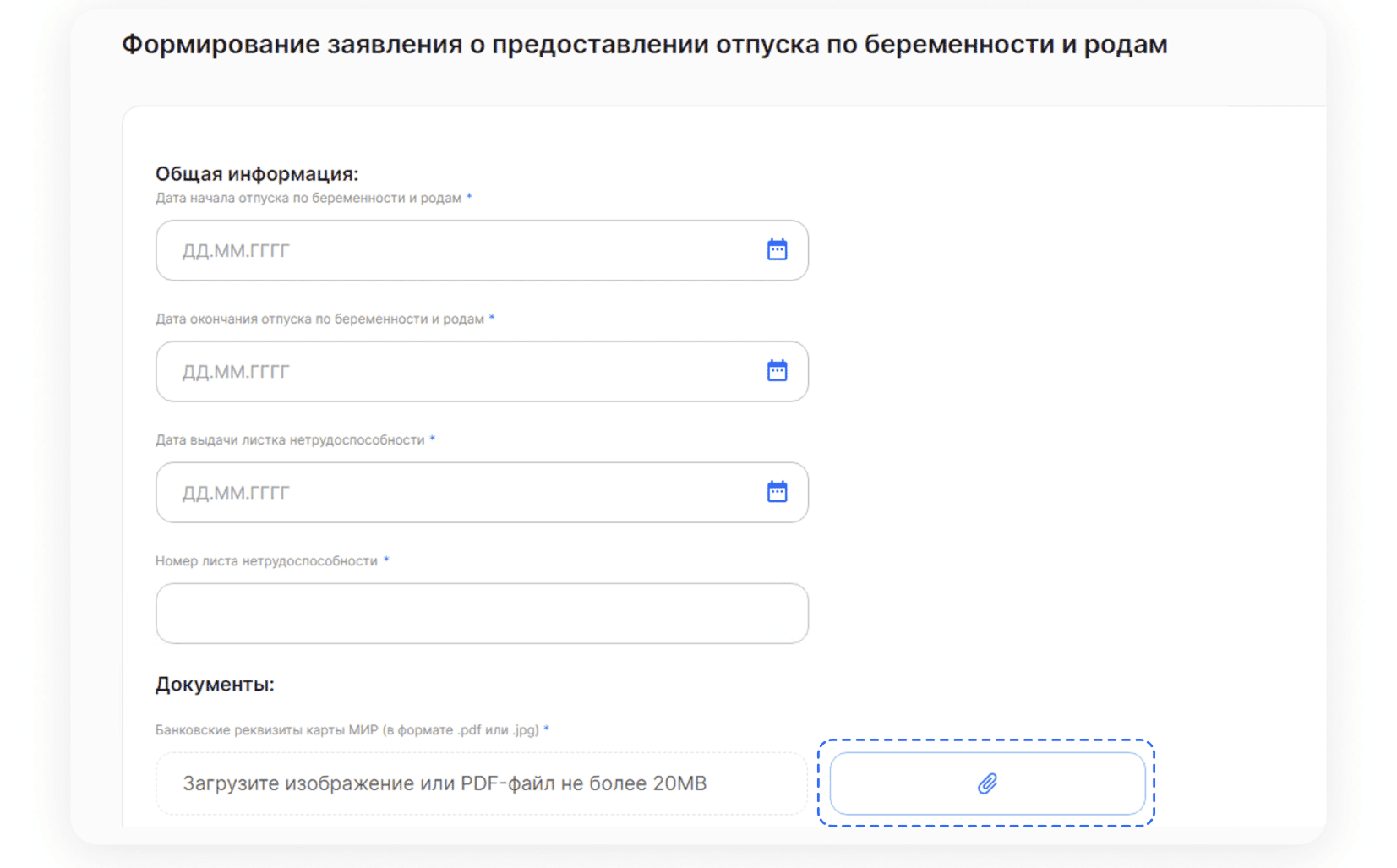 - Для загрузки вручную нажимает на кнопку со скрепкой и загружает файл PDF.
