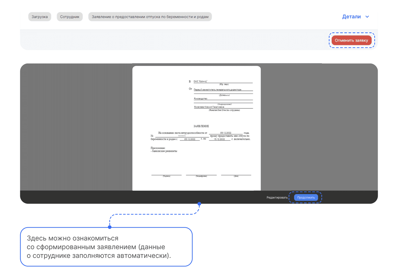 - Если заявка заполнена верно, нажимает на кнопку Продолжить.