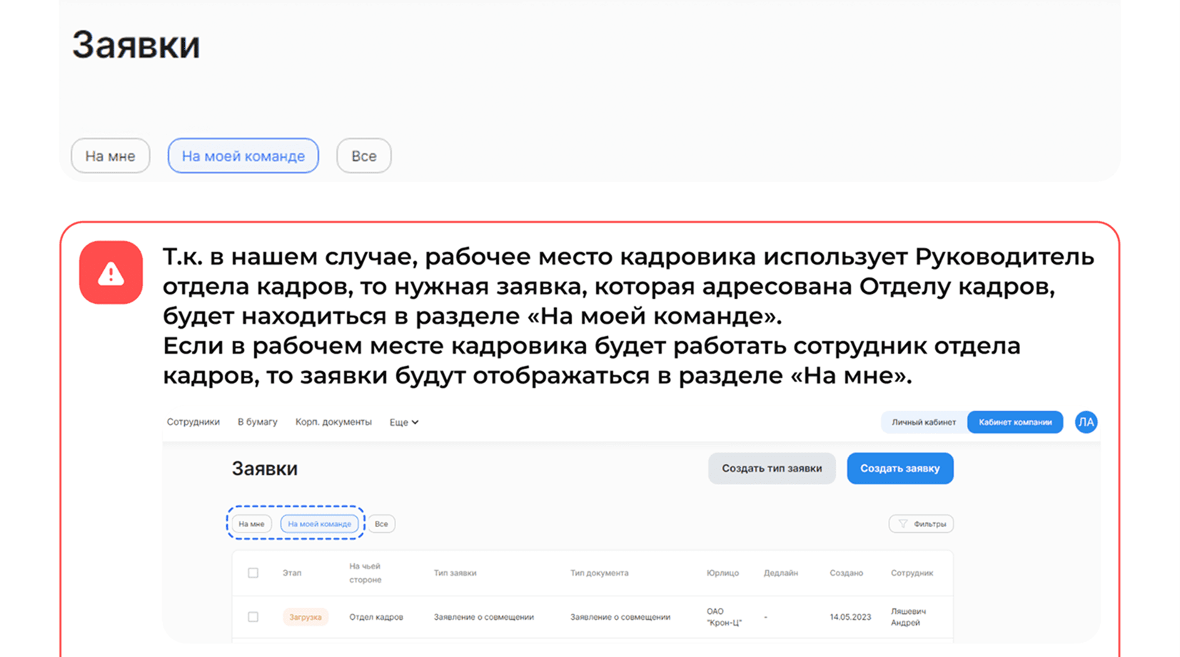 - Отдел кадров переходит в Сервисы компании в веб-сервисе.